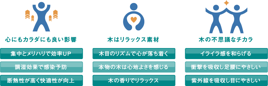 人にやさしい「木」を使うことで、健康価値が高まります。
