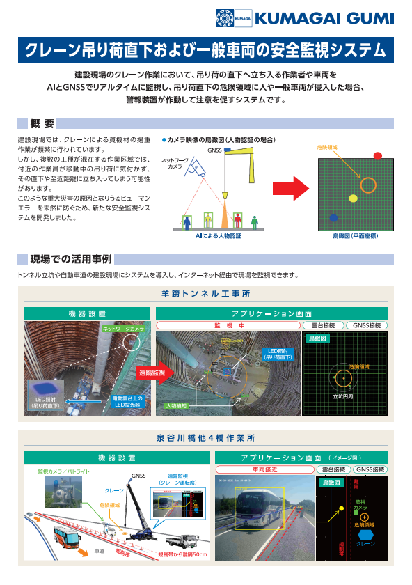 クレーン作業による吊り荷の直下に侵入した人を、AIとGNSSでリアルタイムに監視、吊り荷直下を可視化する安全システム