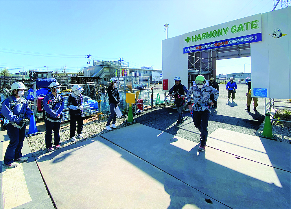例えば、「働き方改革」のひとつである<現場モードのON/OFF>の切り替えラインとして、「ハーモニーゲート」と称する作業現場への出入り口を一つだけ設け、朝礼後、着工から竣工まで当番の職長とそこに立ち、一人ひとりに声がけを実施。時には、飴などを配りました。